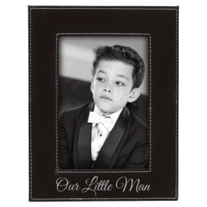 4" x 6" Black/Silver Leatherette Photo Frame with 4 1/4" x 7 7/8" Engraving Area