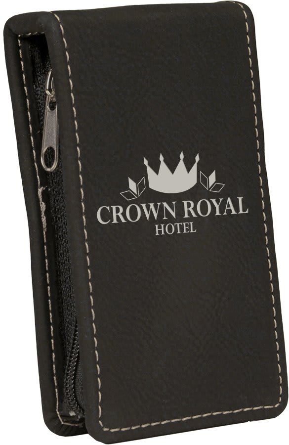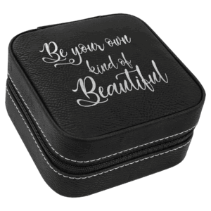 4" x 4" Black/Silver Laserable Leatherette Travel Jewelry Box with Tan Lining