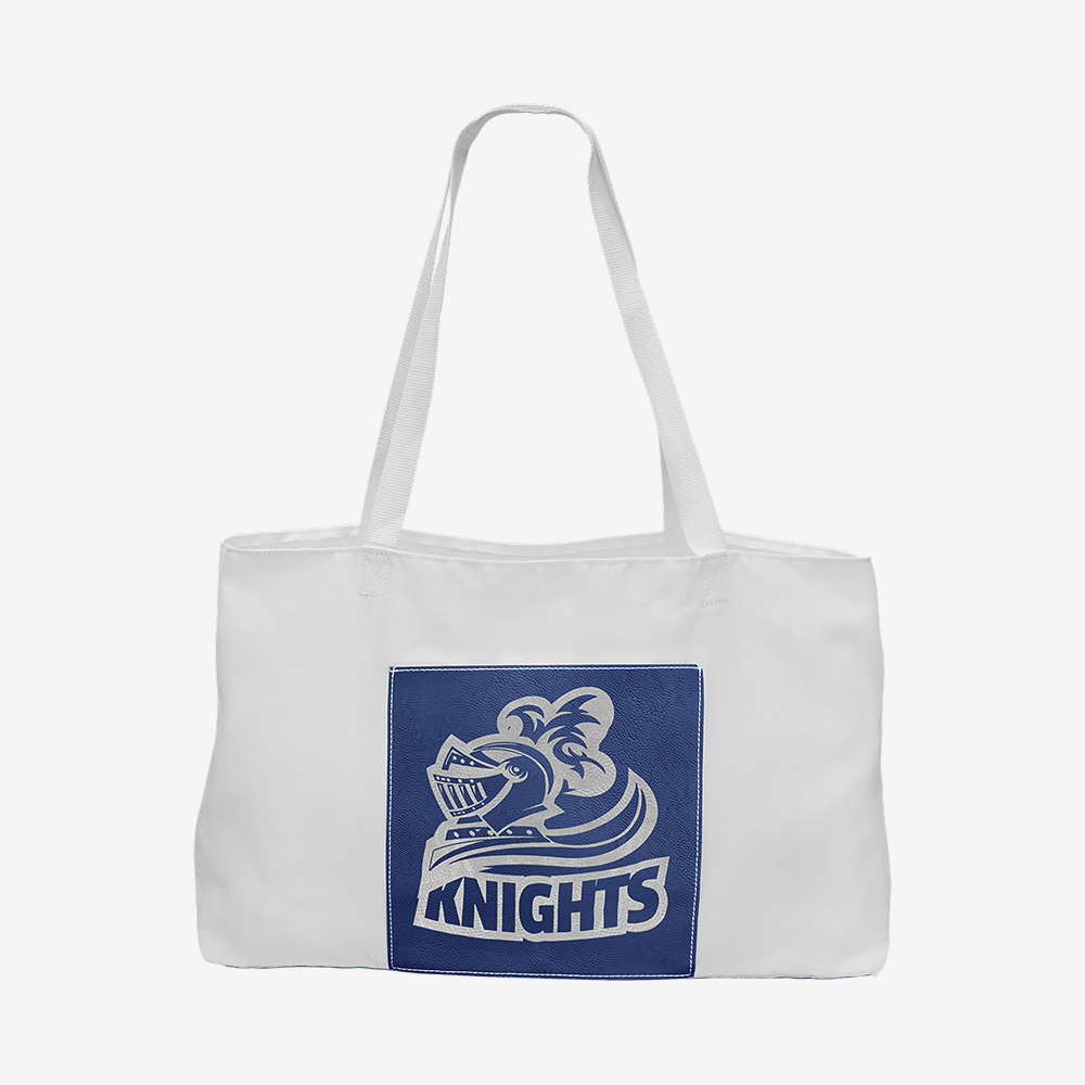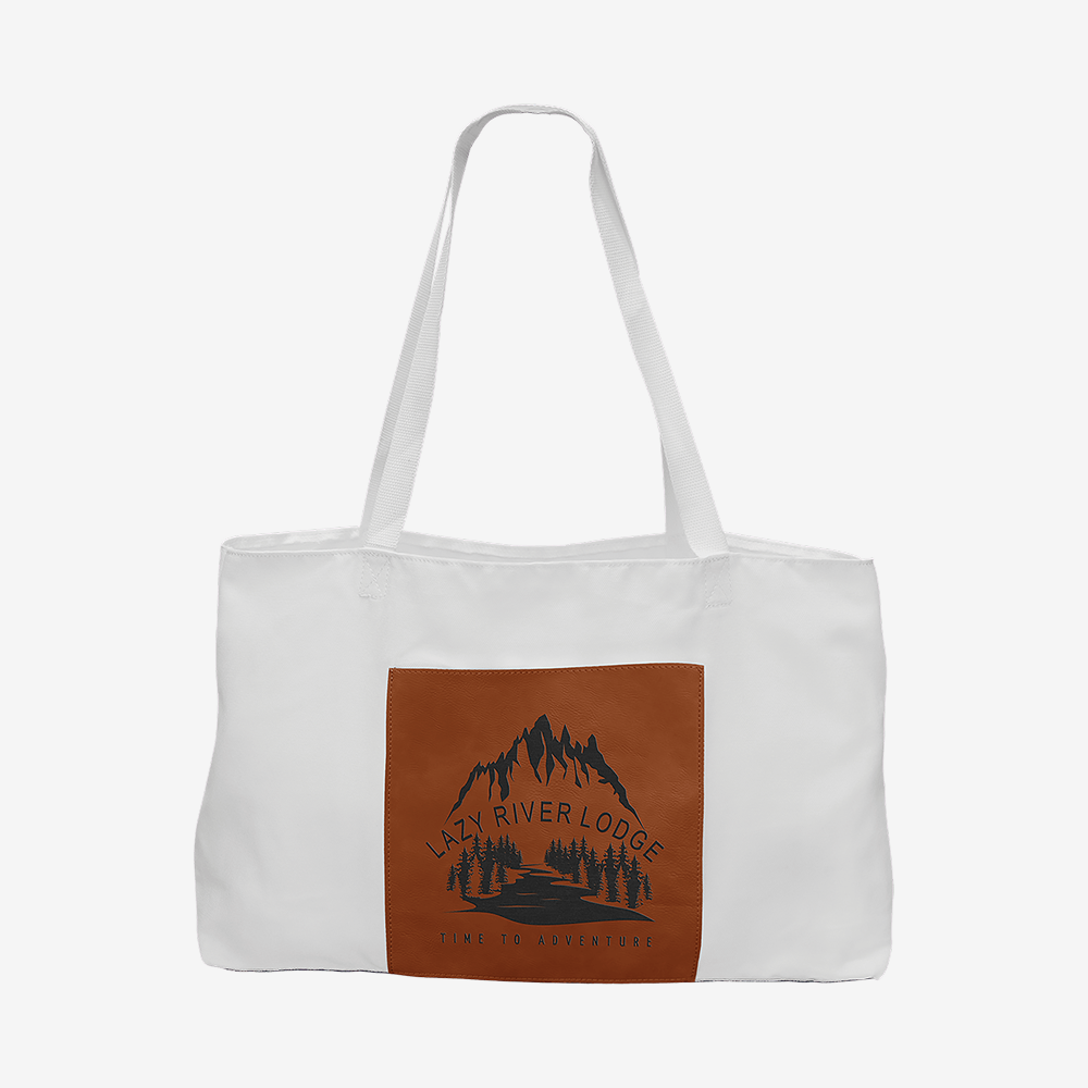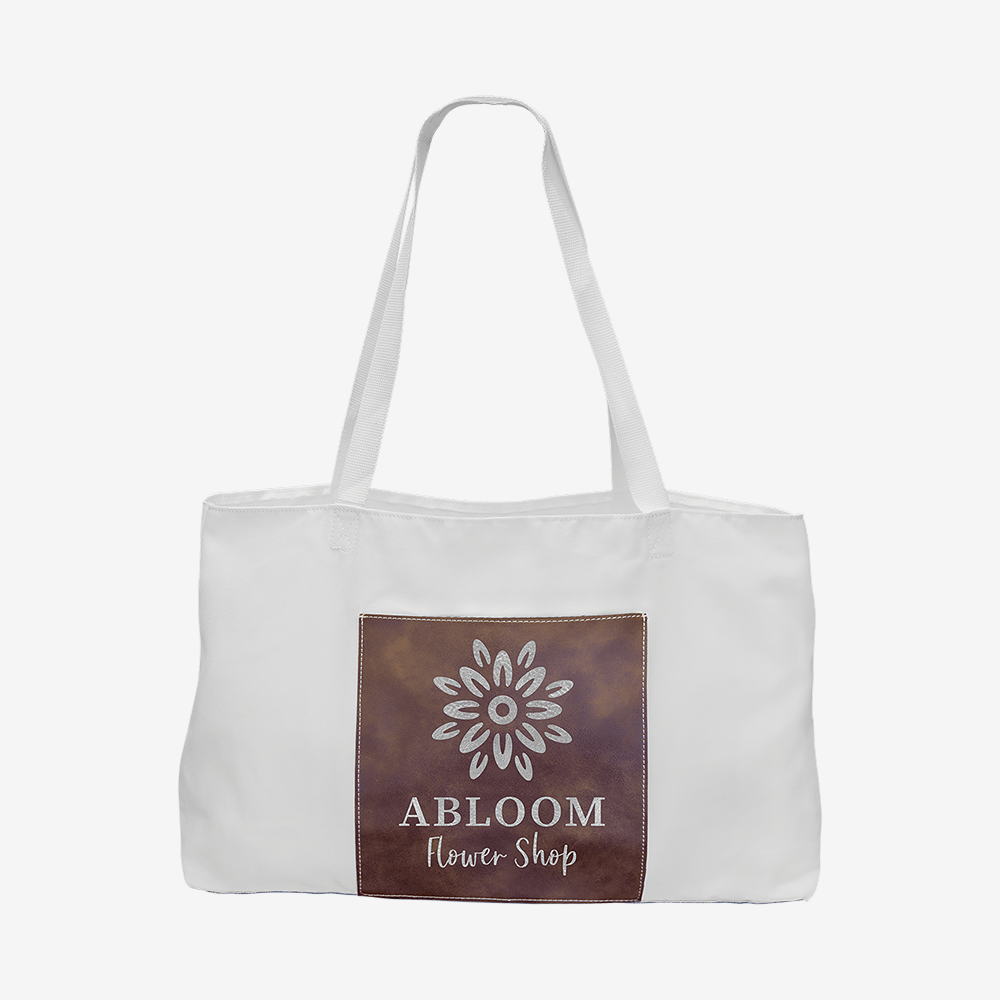 19" x 12" White Bag with 5" Rawhide Laserable Leatherette Gusset