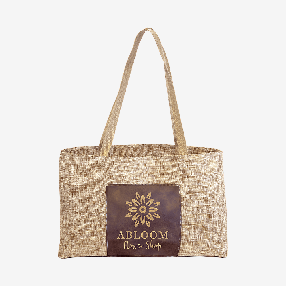 19" x 12" Burlap Bag with 5" Rawhide Laserable Leatherette Gusset