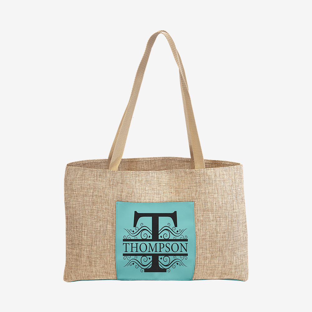 Teal Leatherette and Burlap Tote Bag