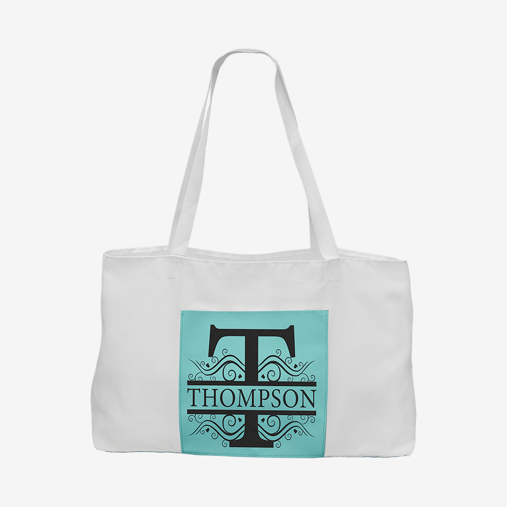 19" x 12" White Bag with 5" Teal Laserable Leatherette Gusset