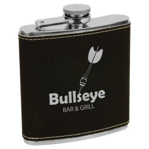 6 oz. Leather Laserable Stainless Steel Flask