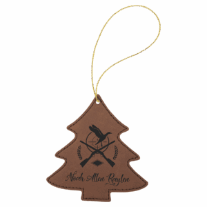 Black/Silver Laserable Leatherette Tree Ornament with Silver String