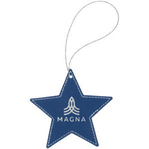 Blue/Silver Laserable Leatherette Oval Ornament with Silver String