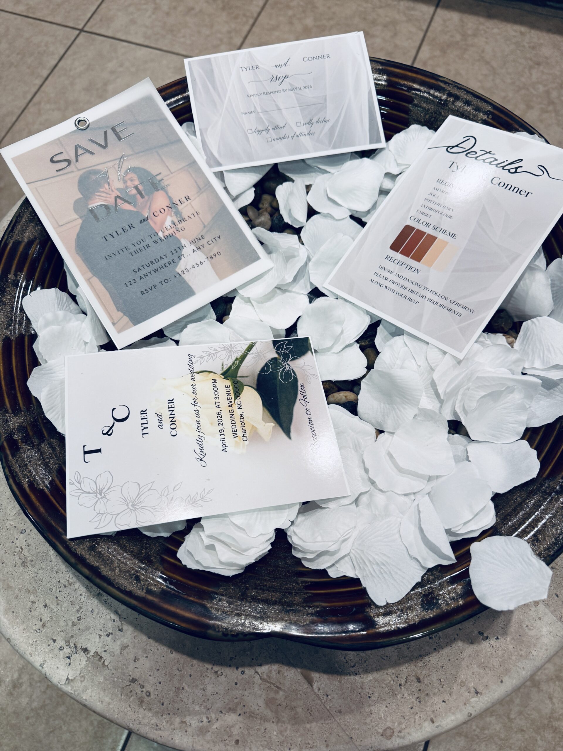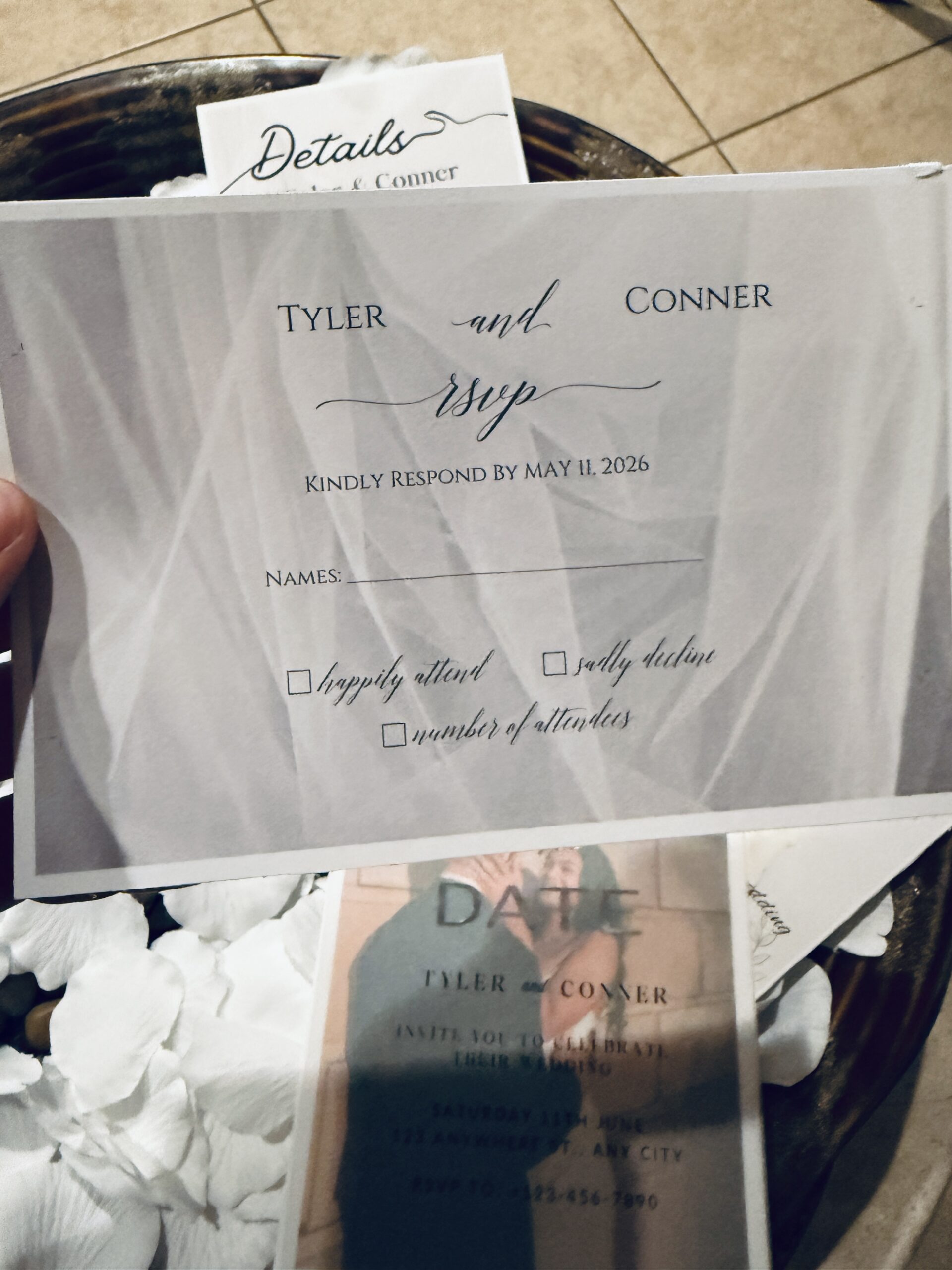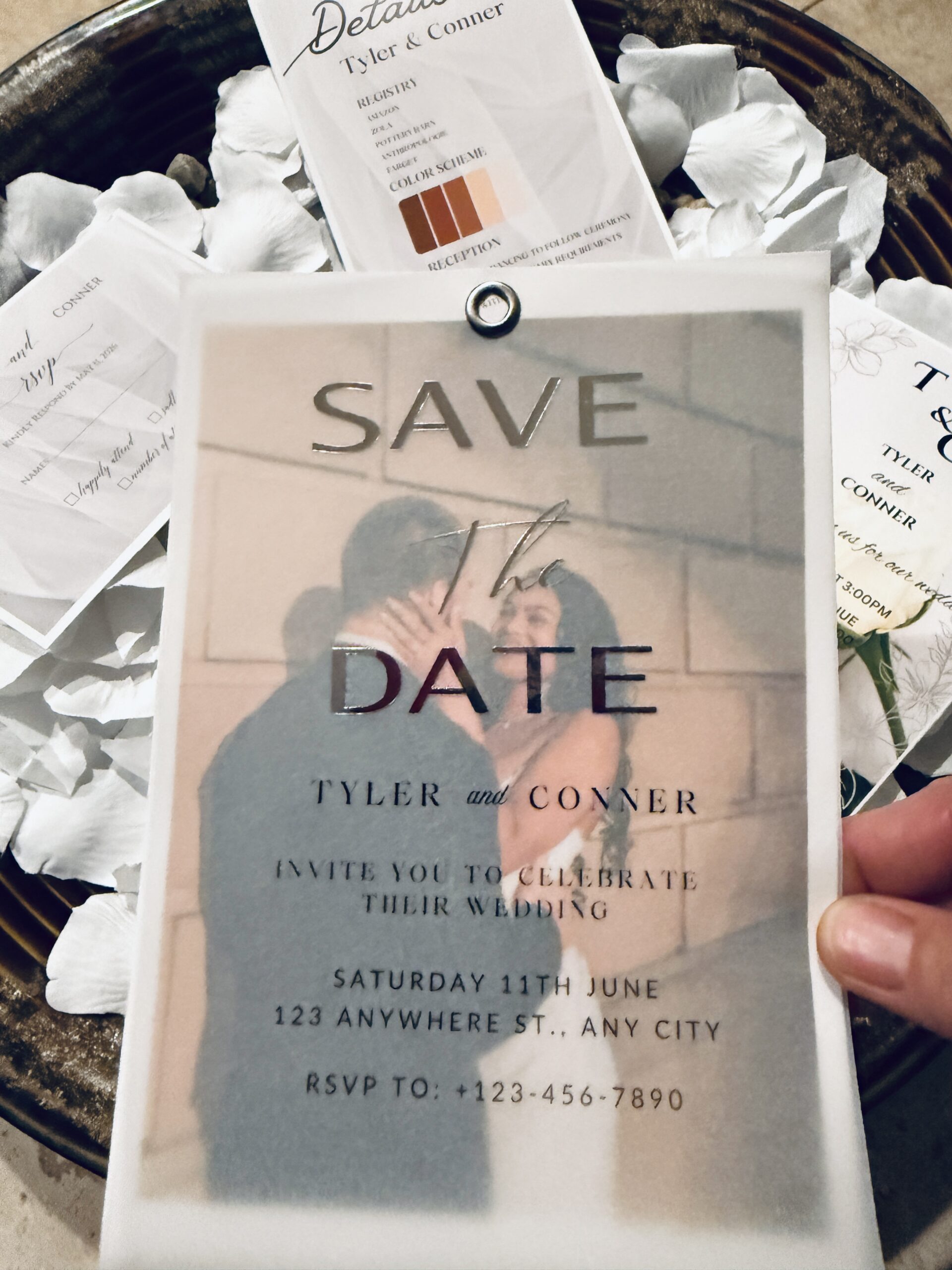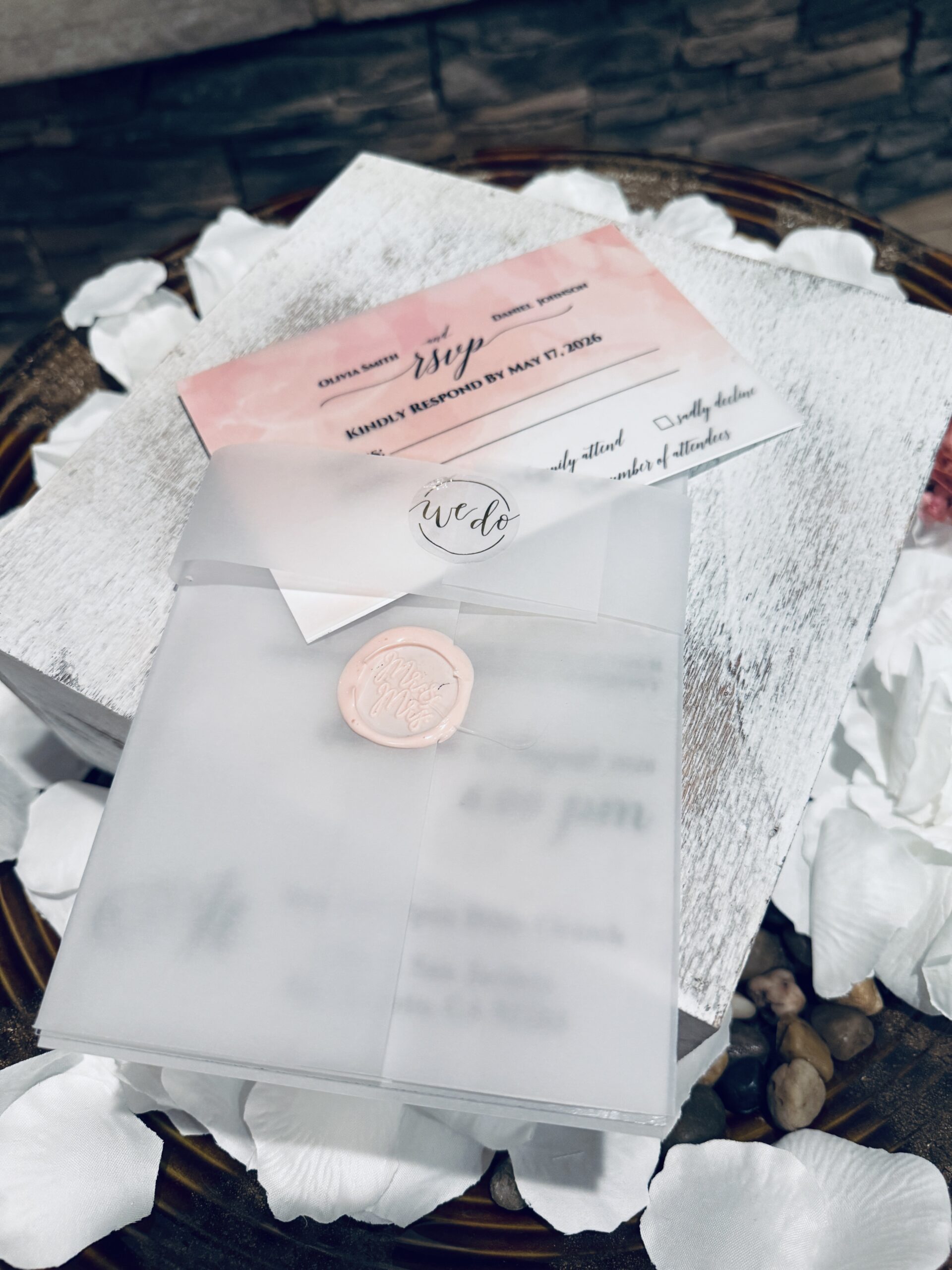 Add On’s: To further refine your suite, we provide envelopes, save-the-date cards, RSVP cards, detail cards, and custom inserts. Message us to include any of these luxury add-ons.